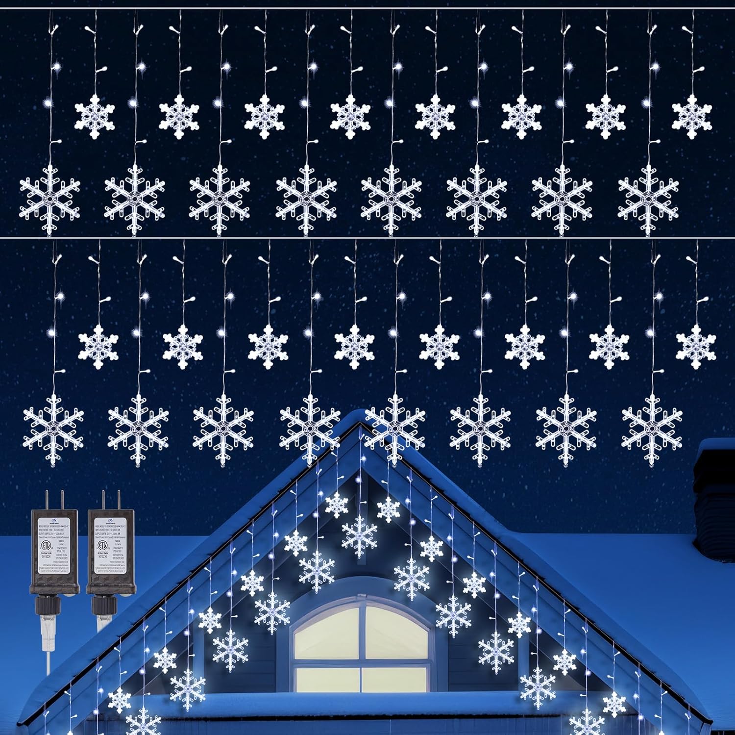 2 Pack Snowflake Icicle Lights - 13 ft 192 LED White Lights