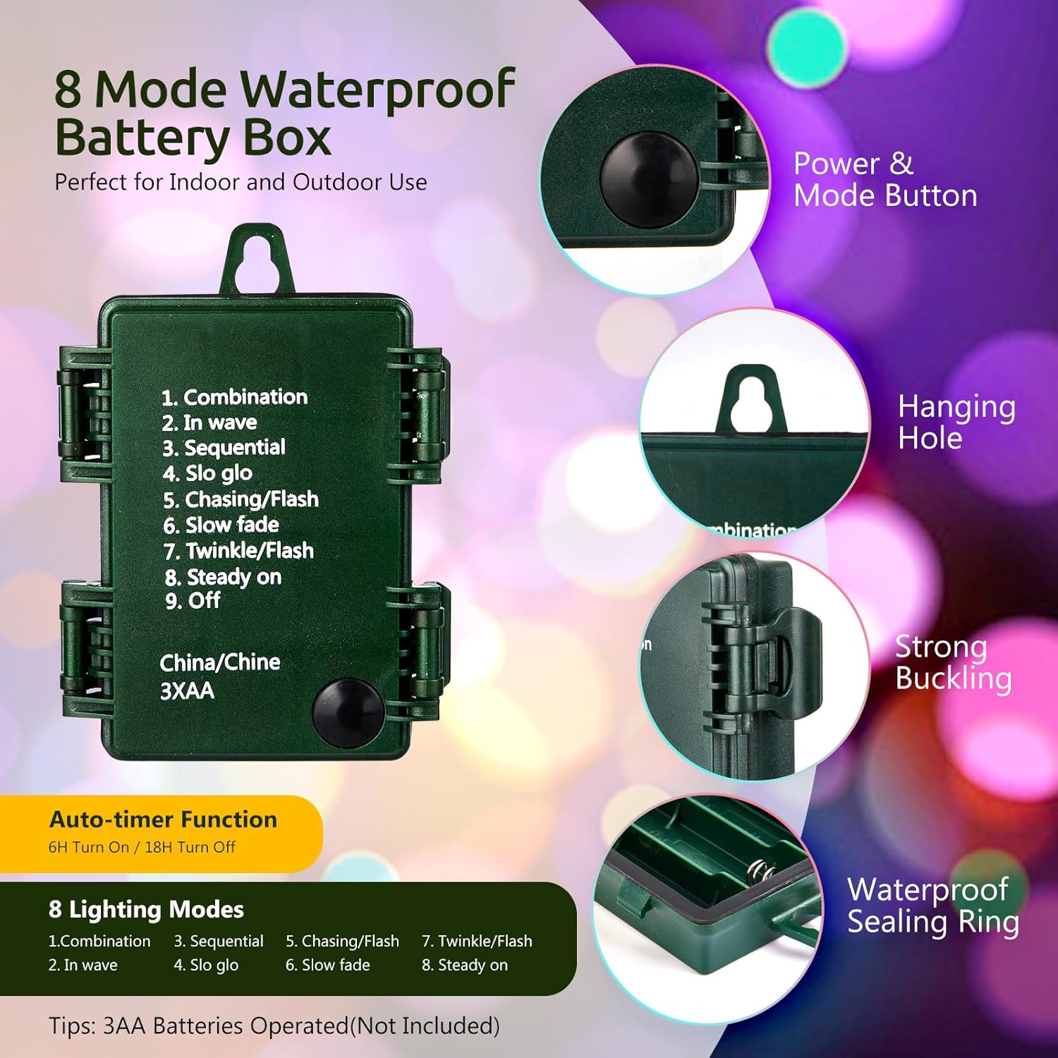 - Battery Operated: Powered by 3 AA batteries (not included), these lights are portable and safe to touch, even after extended use.