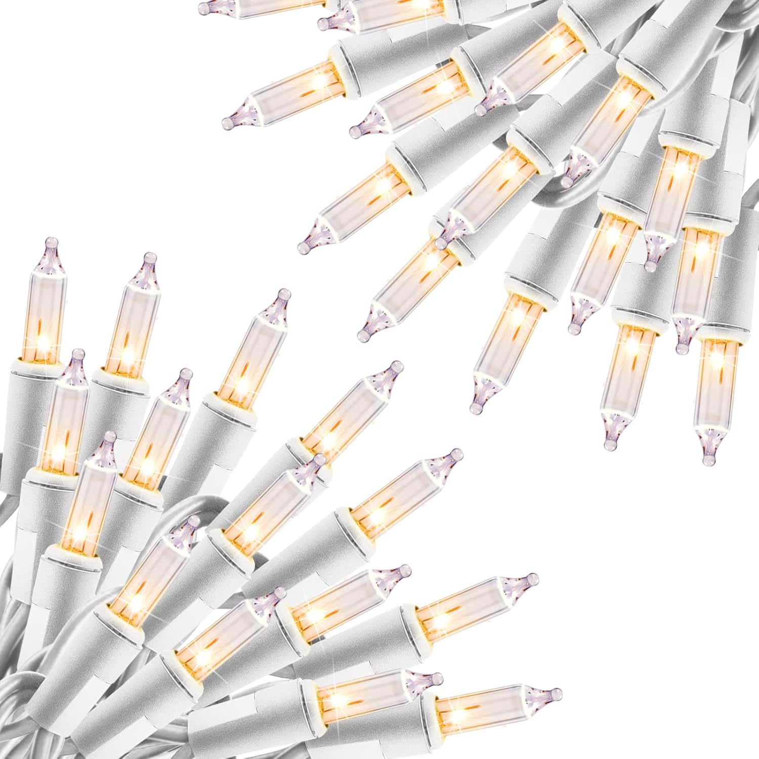 2 Pack 39FT LED Christmas Mini Lights with 100 Clear Bulbs, Warm White