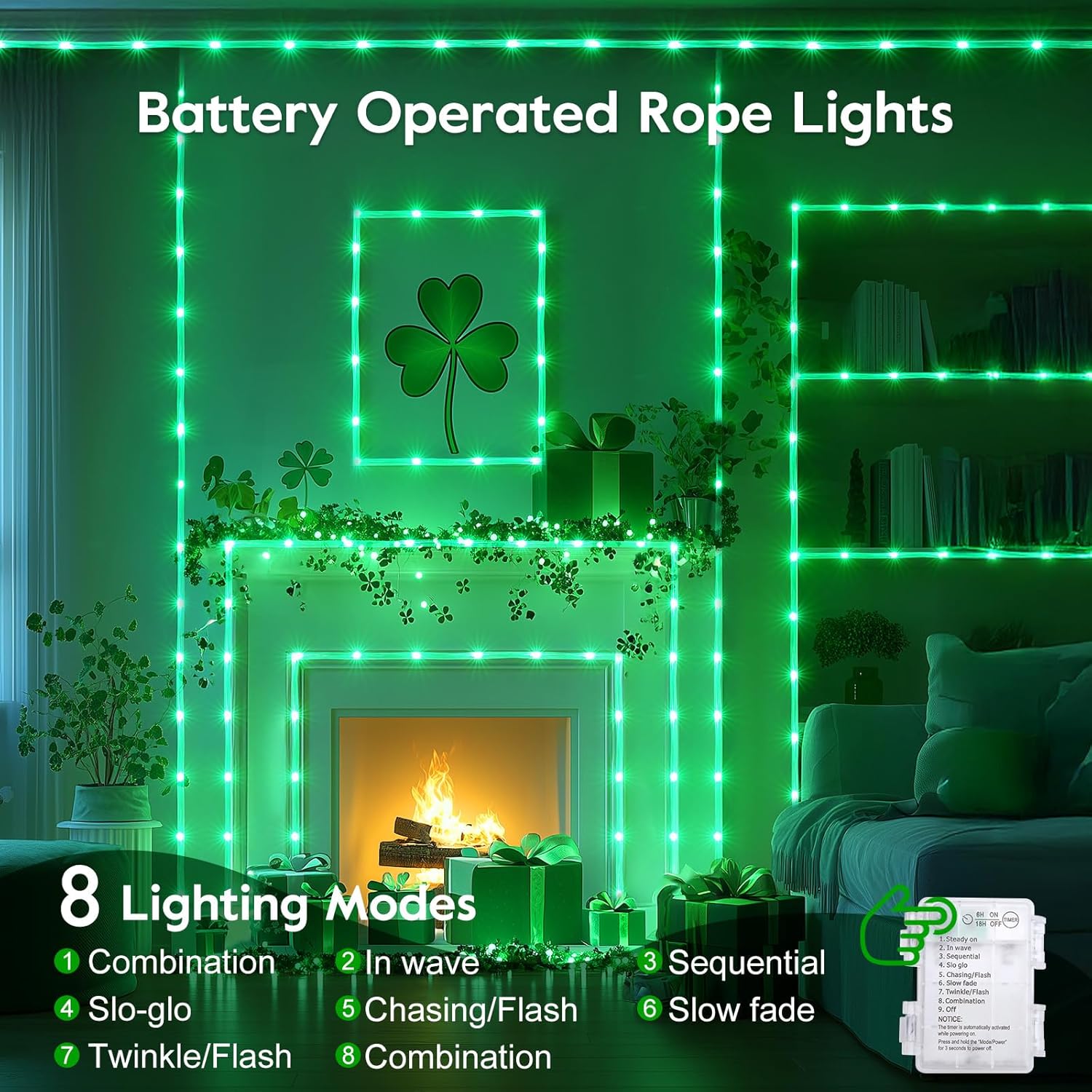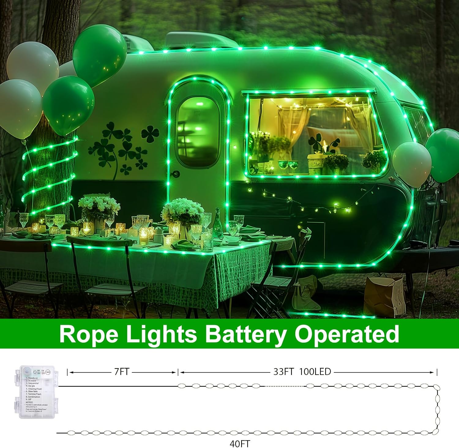 - 8 Lighting Modes: Choose from 8 modes including steady, wave, sequential, and twinkle by pressing the button on the battery box.