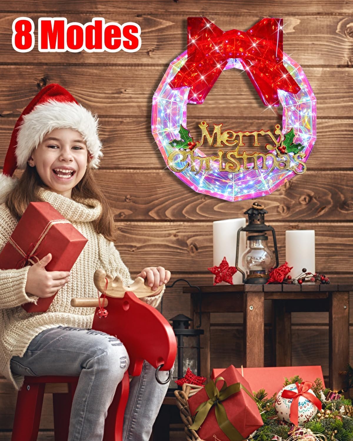 - 8 Modes: The Lighted Christmas Wreath have 8 lighting modes: Combination, in waves, sequential, slogs, chasing, slow fade, twinkle, steady on. Experience 8 versatile light settings, perfect for enhancing different occasions and settings