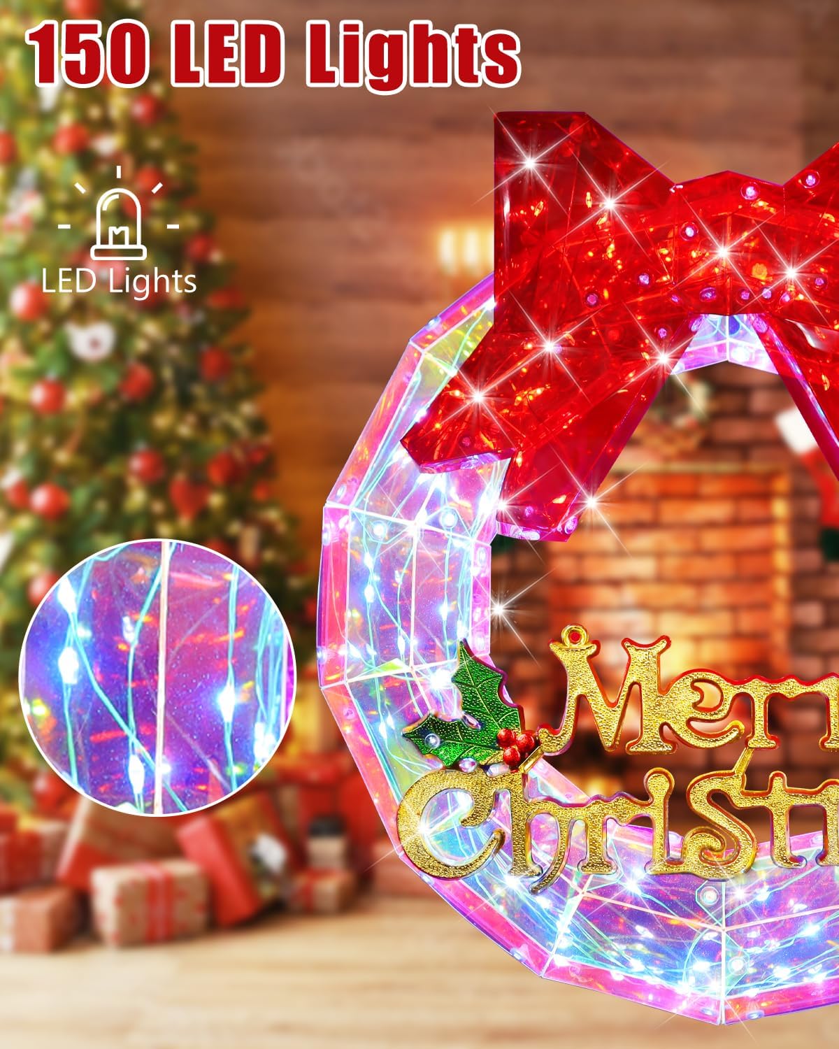 - High Quality & Energy Saving: Brightown lighted Christmas Wreath is made of PET material and iridescent film, the unique rainbow color creates a stunning visual effect. LEDs are made of high durability and energy efficiency material, and save up to 80% energy compared to traditional incandescent bulbs